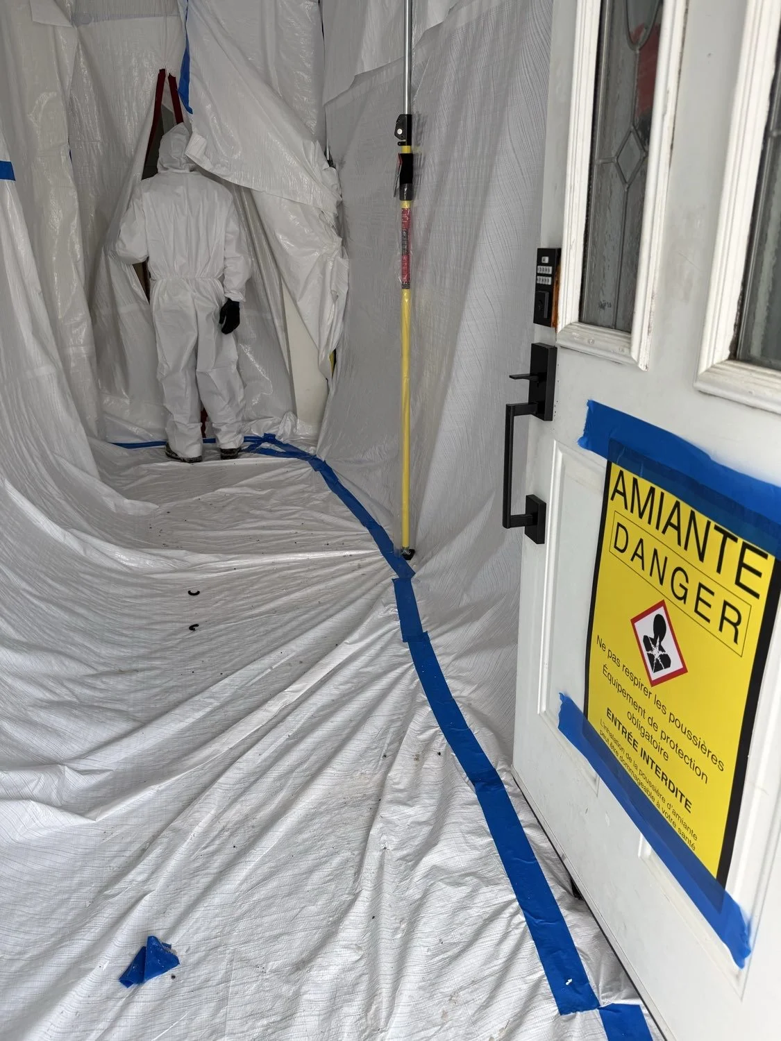 Service professionnel de retrait d’amiante dans les greniers, murs et plafonds. Intervention sécurisée selon les normes en vigueur au Québec pour éliminer les matériaux contenant de l’amiante avant travaux d’isolation ou rénovation.